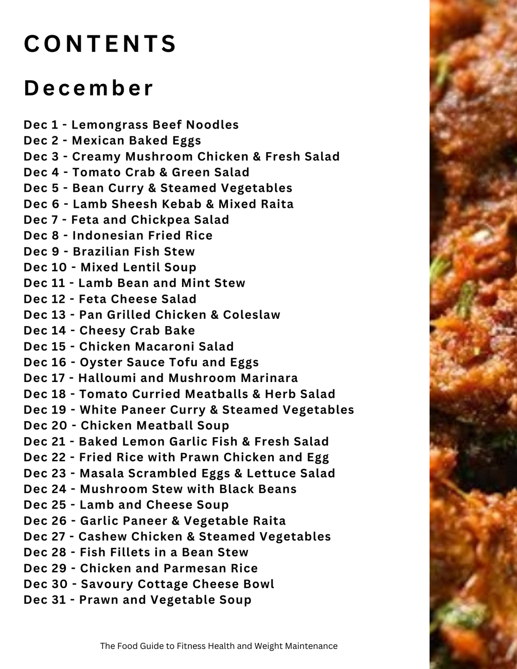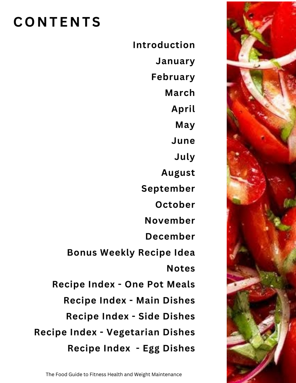 Open the page that indicates the month and day. Those recipes can be used as your meals of the day. Just follow along. Or use as a meal template. Tweak and twist them according to your tastes and preferences. The choice is yours. It just takes away the stress of wondering what to cook every single day.